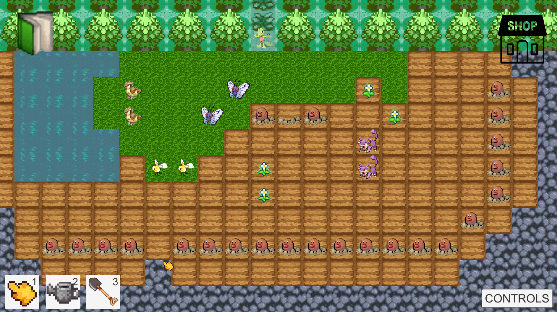 An animal breeding and gardening-style automation game prototype.