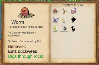 Species perform unique functions to change terrain or create resources. Worms dig out new space, Frogs water plants, Woodpeckers peck fruit off of trees, etc!